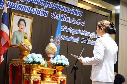 นายสุวัฒน์ มีอุปการ พัฒนาการอำเภอรัตภูมิ และนายพิเชฐ แต่งบุญงาม นักวิชาการพัฒนาชุมชนชำนาญการ ได้นำคณะกรรมการเครือข่ายกองทุนแม่ของแผ่นดิน และคณะกรรมการหมู่บ้านต้นกล้ากองทุนแม่ของแผ่นดิน อำเภอรัตภูมิ เข้าร่วม โครงการพิธีมอบเงินพระราชทานขวัญถุงกองทุนแม่ของแผ่นดินแก่หมู่บ้านต้นกล้ากองทุนแม่ของแผ่นดิน ประจำปี พ.ศ. 2568